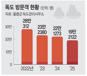 ¿ì¸® ¶¥ µ¶µµ ¹æ¹®°´ÀÌ 2022³â ÀÌÈÄ °¥¼ö·Ï ÁÙ¾îµé¾î 4³â ¸¸¿¡ 20¸¸ ¸í ¾Æ·¡·Î ¶³¾îÁø °ÍÀ¸·Î ³ªÅ¸³µ´Ù. ´ë³»¿ÜÀû ¿©ÆÄ·Î ÀϽÃÀûÀ¸·Î ¹æ¹®°´ÀÌ ÁÙ¾îµç ÀûÀº ÀÖÁö¸¸ Áö¼ÓÀû °¨¼Ò¼¼´Â µ¶µµ¿¡ ´ëÇÑ ±¹¹ÎÀû °ü½É°ú ¿¬°üÀÌ ÀÖ´Â °ÍÀ¸·Î º¸ÀδÙ. ƯÈ÷ ¹Ù°¡Áö¿ä±Ý ³í¶õ¿¡ µû¸¥ ¿ï¸ªµµ °ü±¤°´ °¨¼Ò°¡ Å« ¿µÇâÀ» ¹ÌÄ¡´Â °ÍÀ¸·Î ºÐ¼®µÈ´Ù. ¿ï¸ªµµ´Â µ¶µµÀÇ ¸ð¼¶À¸·Î, ¿ï¸ªµµ¿Í µ¶µµ¸¦ ÆÐŰÁö·Î ã´Â À̵éÀÌ ¸¹°í µ¶µµ¸¦ ¹æ¹®ÇÏ·Á¸é ¿ï¸ªµµ¸¦ °ÅÃÄ¾ß ÇÑ´Ù.